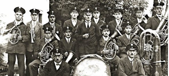 Die ersten Nachweise lieferten in den Jahren 1913 und 1914 unter anderem das "Säckinger Tagblatt", die "Kleinlaufenburger Nachrichten" und der "Alb-Bote". Sie belegten, dass die ersten Musikeraktivitäten in Altenschwand nach einer Feuerwehrgründung erfolgten. Am 2. Januar 1914 informierten zwei Zeitungen über eine Christbaumfeier in Rüttehof, die von der Feuerwehr Altenschwand und ihren Musikern gestaltet wurde. Im Originaltext heißt es: "Die Freiwillige Feuerwehr hält am Sonntag, den 4. Januar, im Gasthaus zum Löwen dahier ihre erste Christbaumfeier unter Mitwirkung ihrer Musik- und Theatergesellschaft ab. Abends punkt 6 Uhr ist Abmarsch der Vereine vom Dorfplatz Altenschwand nach hier. Beginn der Aufführungen abends 7 Uhr. Der Verein wird bemüht sein, den Anwesenden einen angenehmen Abend zu bereiten, wozu neben den Mitgliedern und deren Angehörigen jedermann freundlichst eingeladen ist. Also auf nach Rüttehof!"